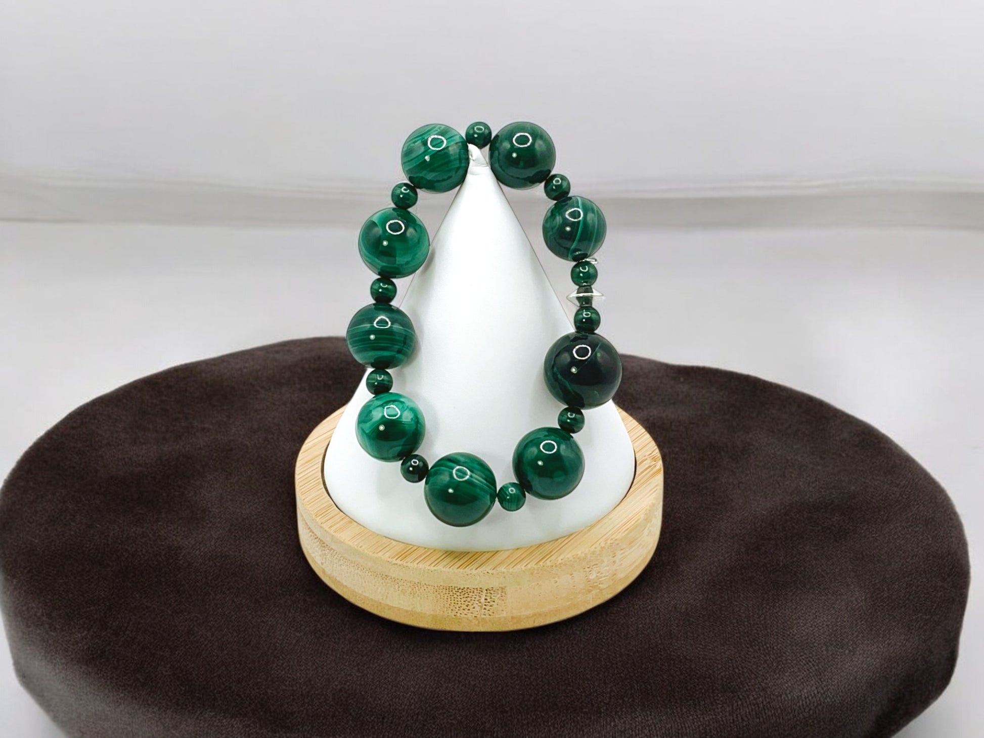 Malachite is a bright green copper carbonate mineral with striking banded patterns.
