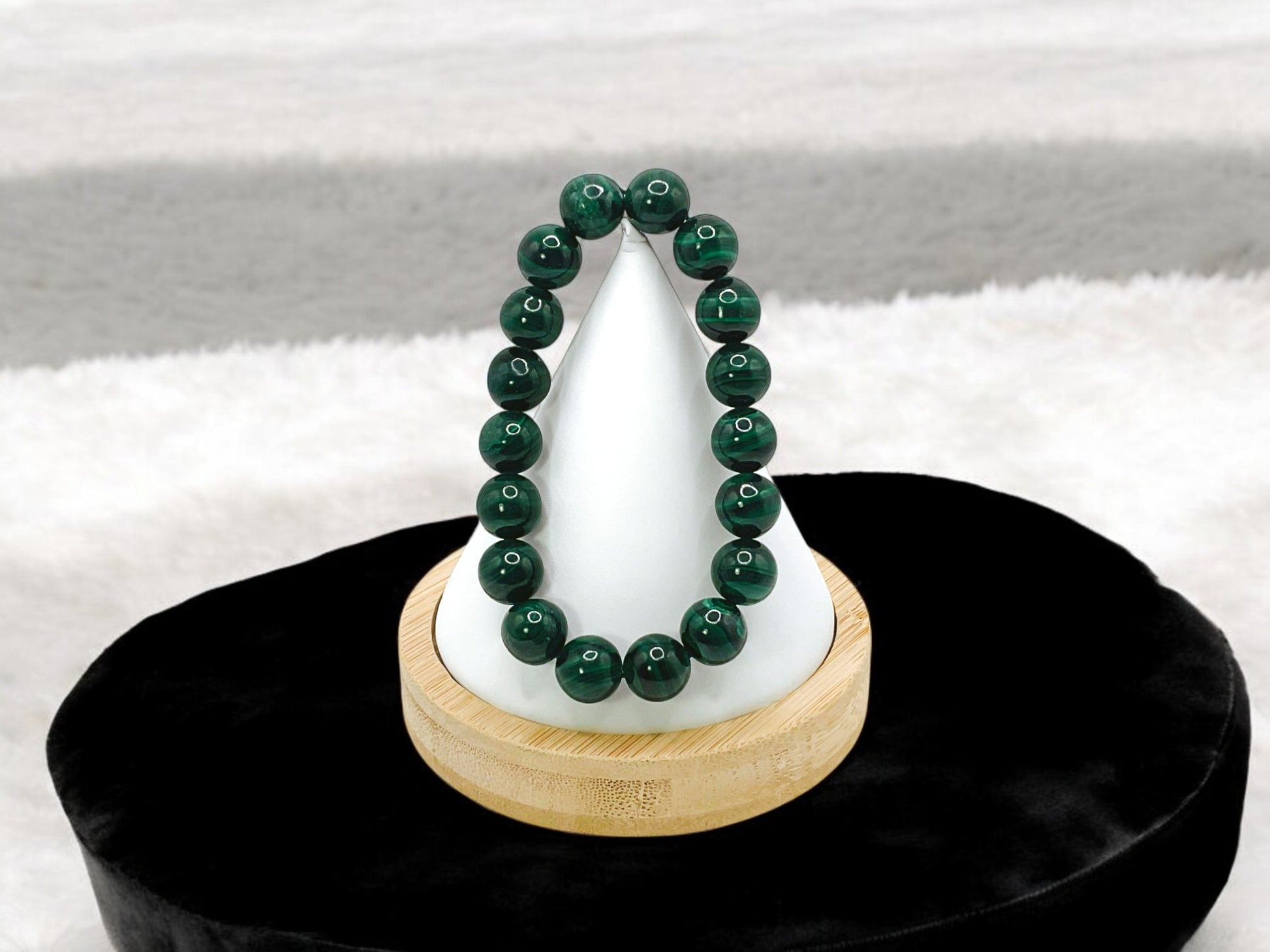 Malachite is a bright green copper carbonate mineral with striking banded patterns.