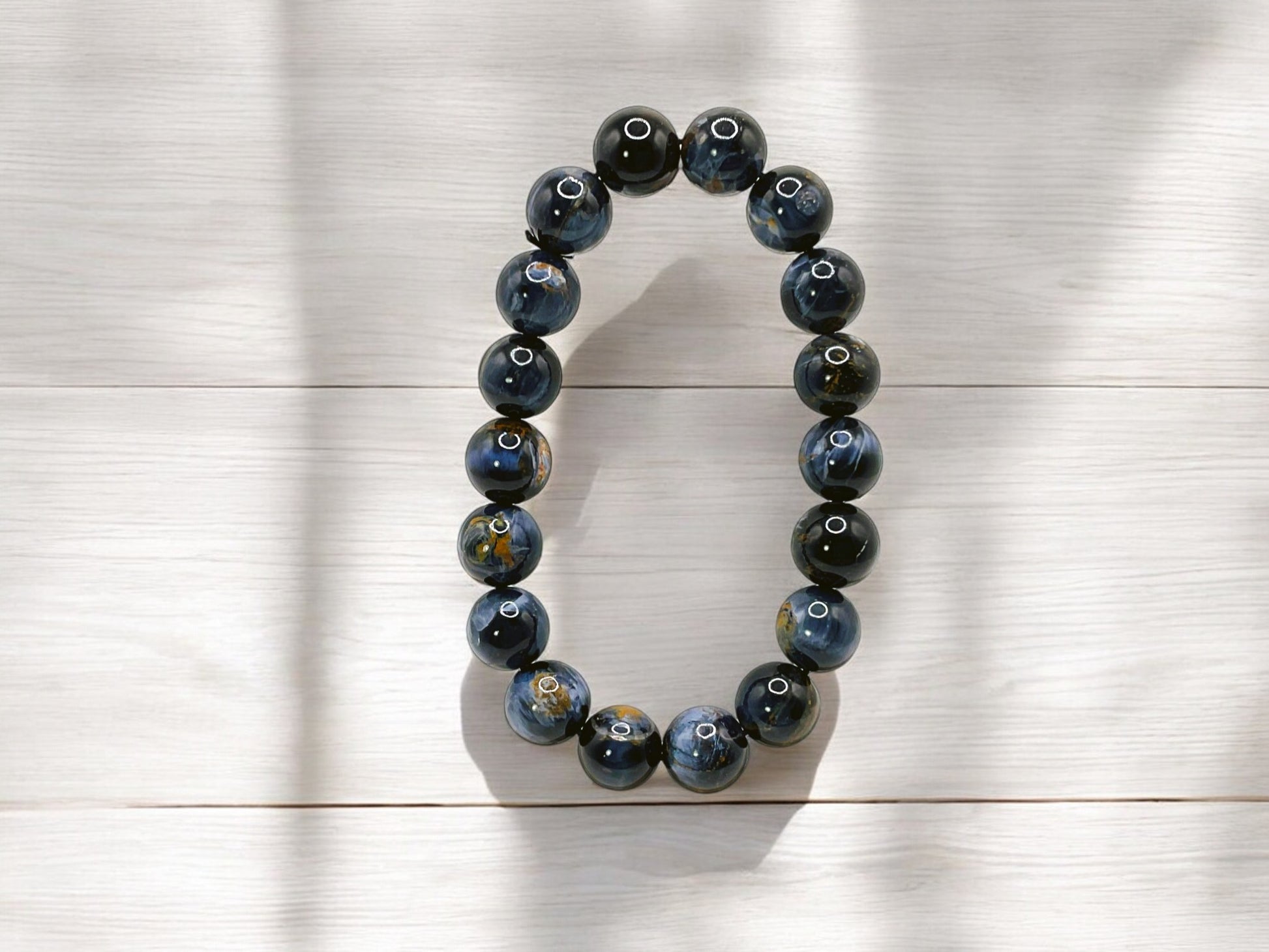 Pietersite is a rare and striking gemstone known for its swirling, stormy patterns of deep blue, gold, red, and brown. Often called the "Tempest Stone,"