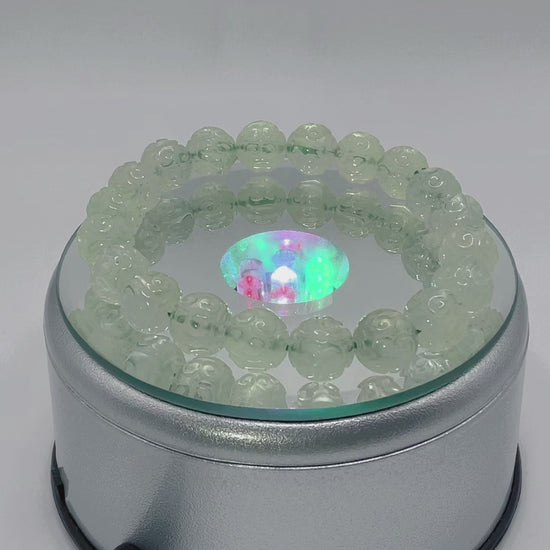 Prehnite is a translucent to transparent gemstone mineral known for its soft green color and unique crystal formations.