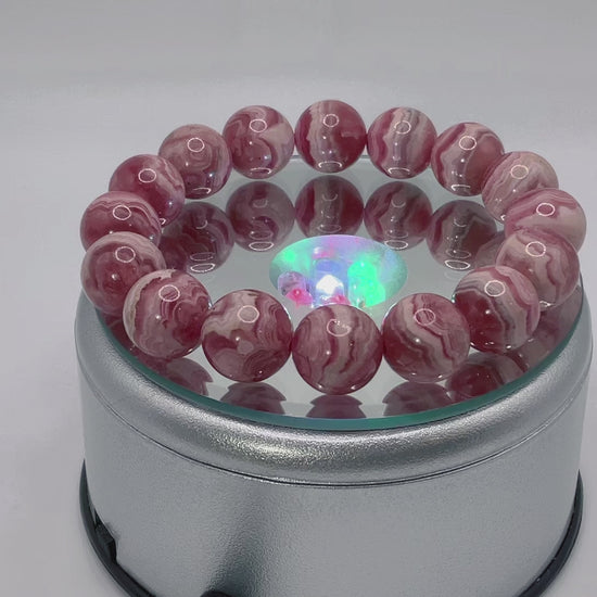 Rhodocrosite is a stunning, vibrant pink to red gemstone known for its beautiful rose-like color and powerful metaphysical properties. It is a mineral that primarily consists of manganese carbonate and is highly valued both for its aesthetic appeal and its ability to facilitate emotional and spiritual healing.